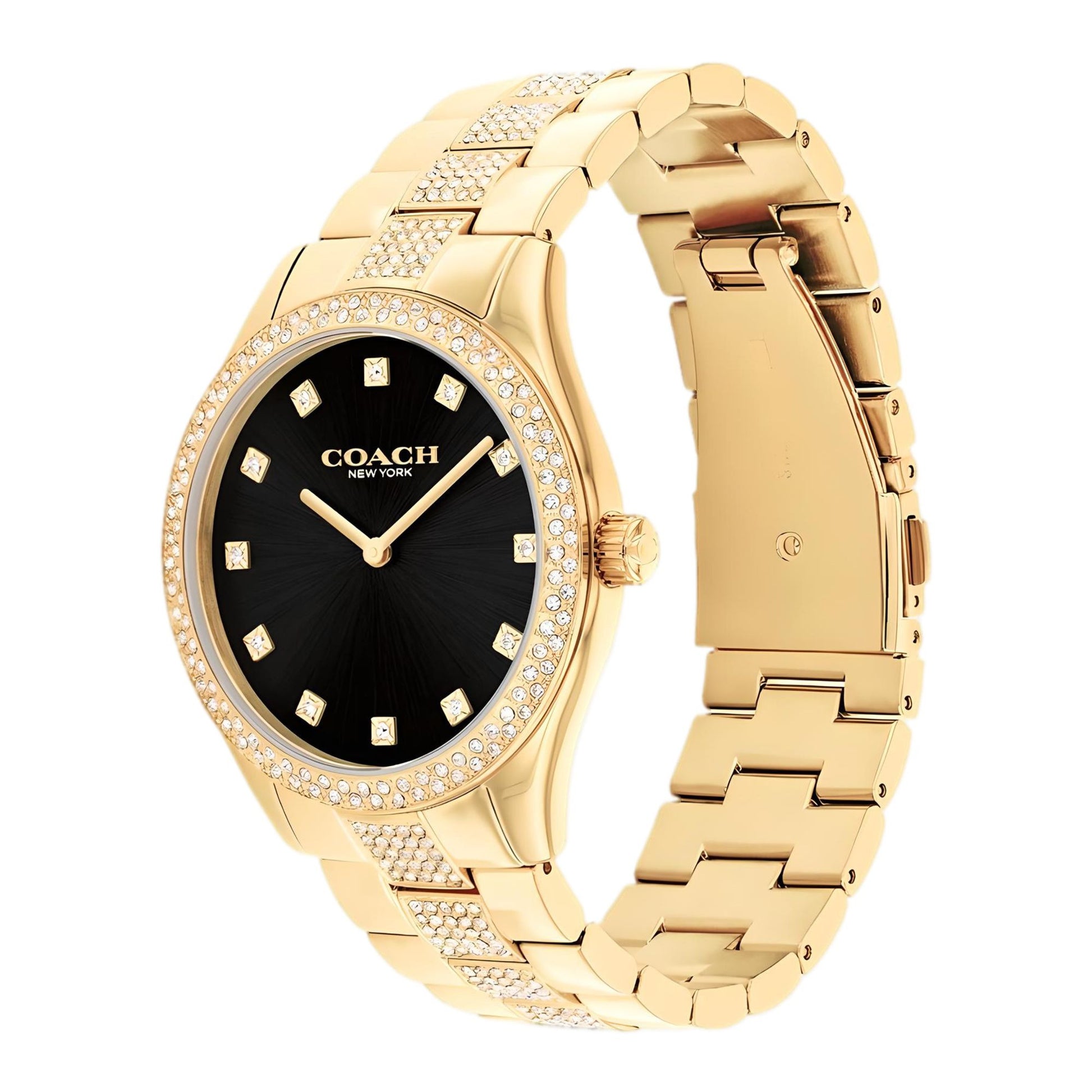 This sophisticated Brooks watch combines a timeless design with contemporary flair, perfect for both daytime and evening wear. The bracelet complements the striking sunray dial, while the bezel, markers, and center links are adorned with shimmering crystals, making it a standout accessory for any occasion.