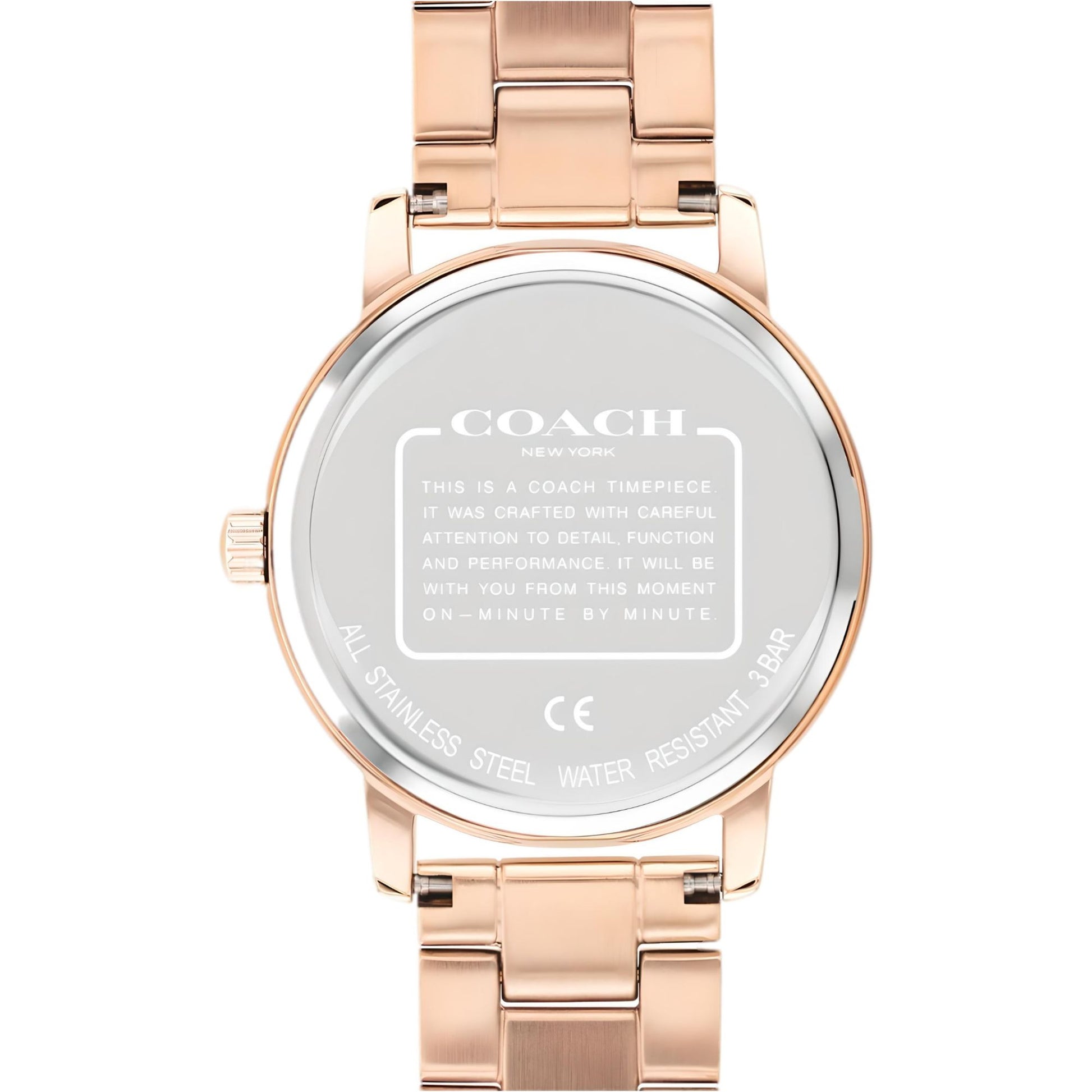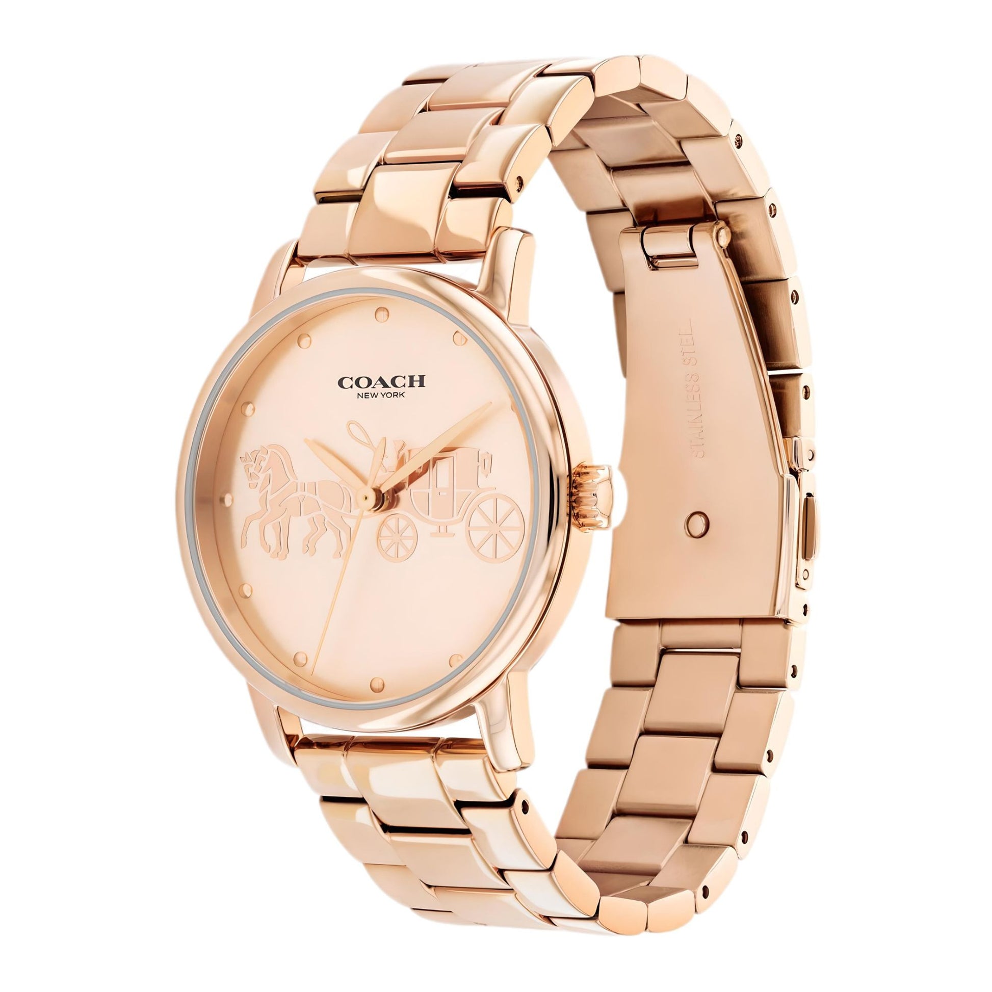 Experience the timeless elegance of New York with this stunning piece from Coach. Showcasing a 36mm stainless steel case in a luxurious rose gold finish, it features a beautifully designed rose gold dial and a matching rose finish link bracelet, perfect for adding a touch of sophistication to any outfit.