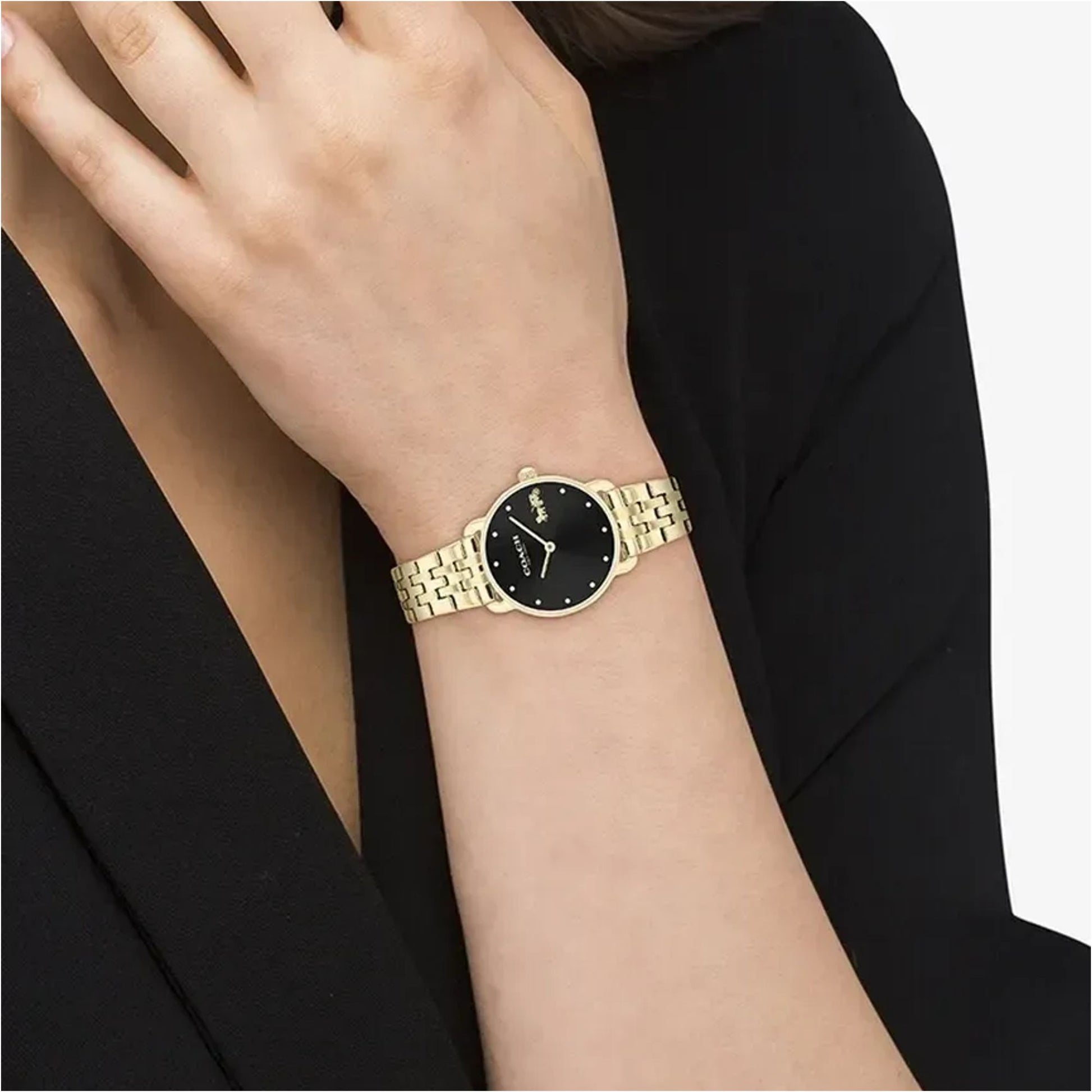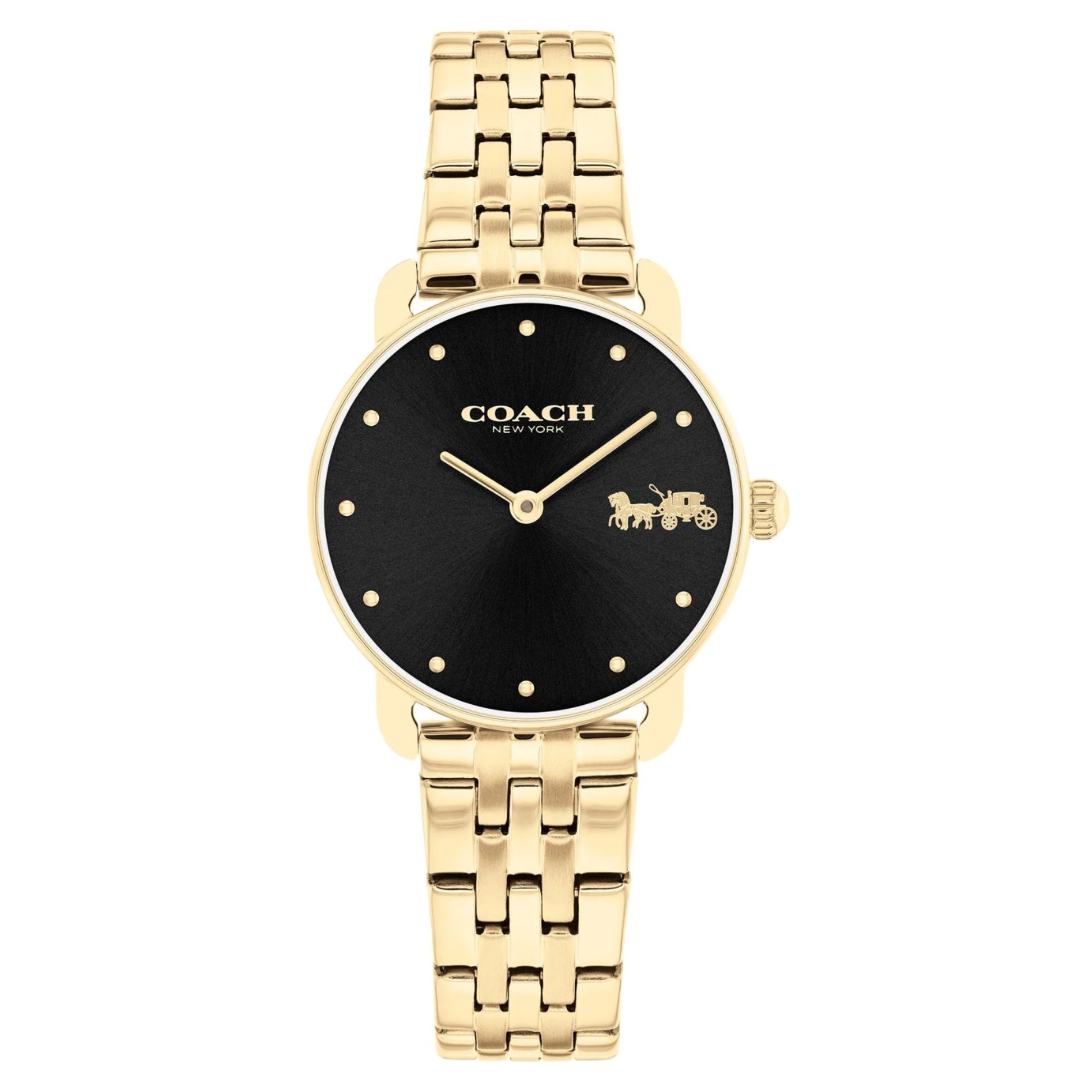 Elevate your everyday style with the Coach Elliot watch. This women timepiece features a minimalist 28mm stainless steel case and matching bracelet, with a distinctive dial accented by the iconic Coach motif. Powered by reliable quartz movement and water-resistant to 30m, its versatile design transitions seamlessly from work to weekend.