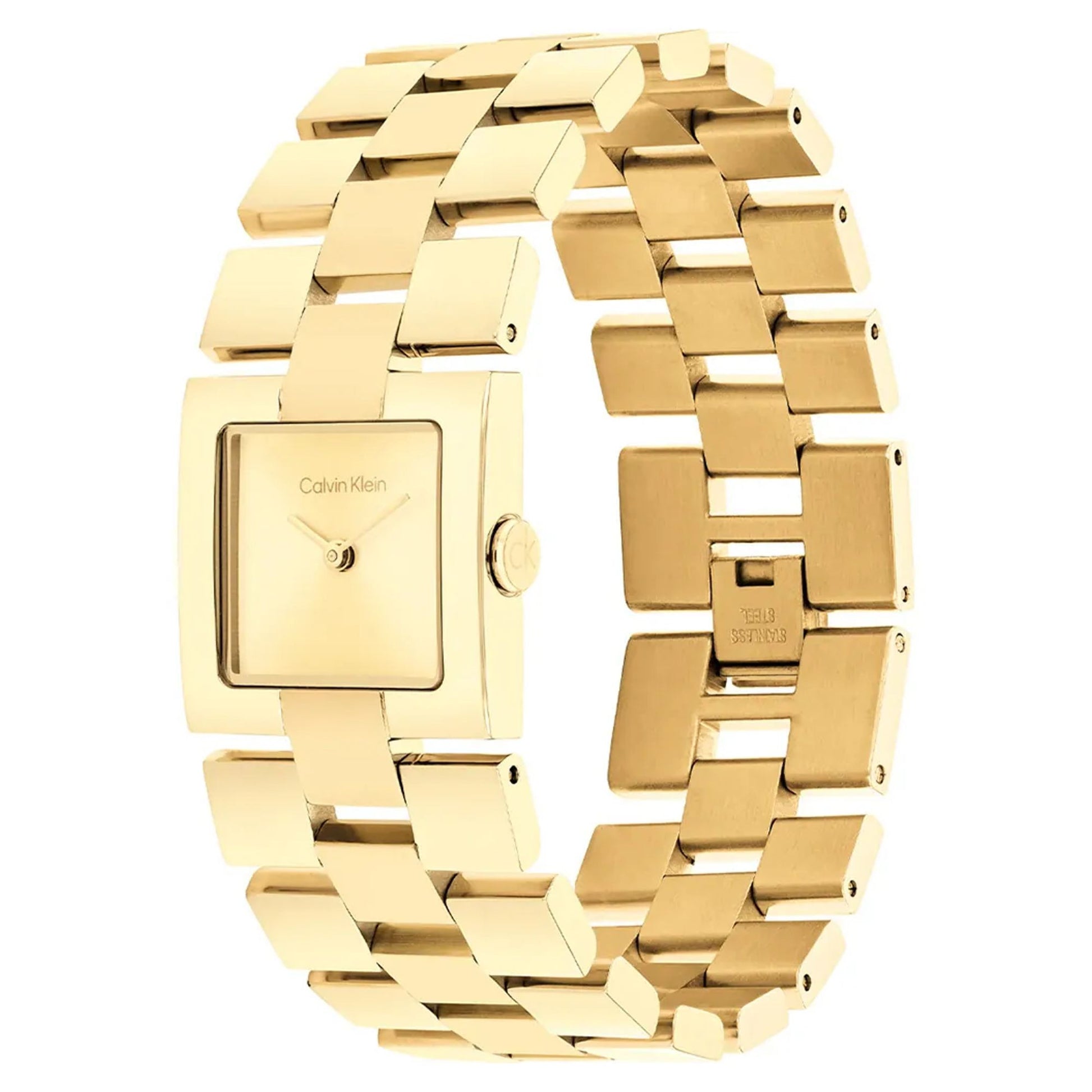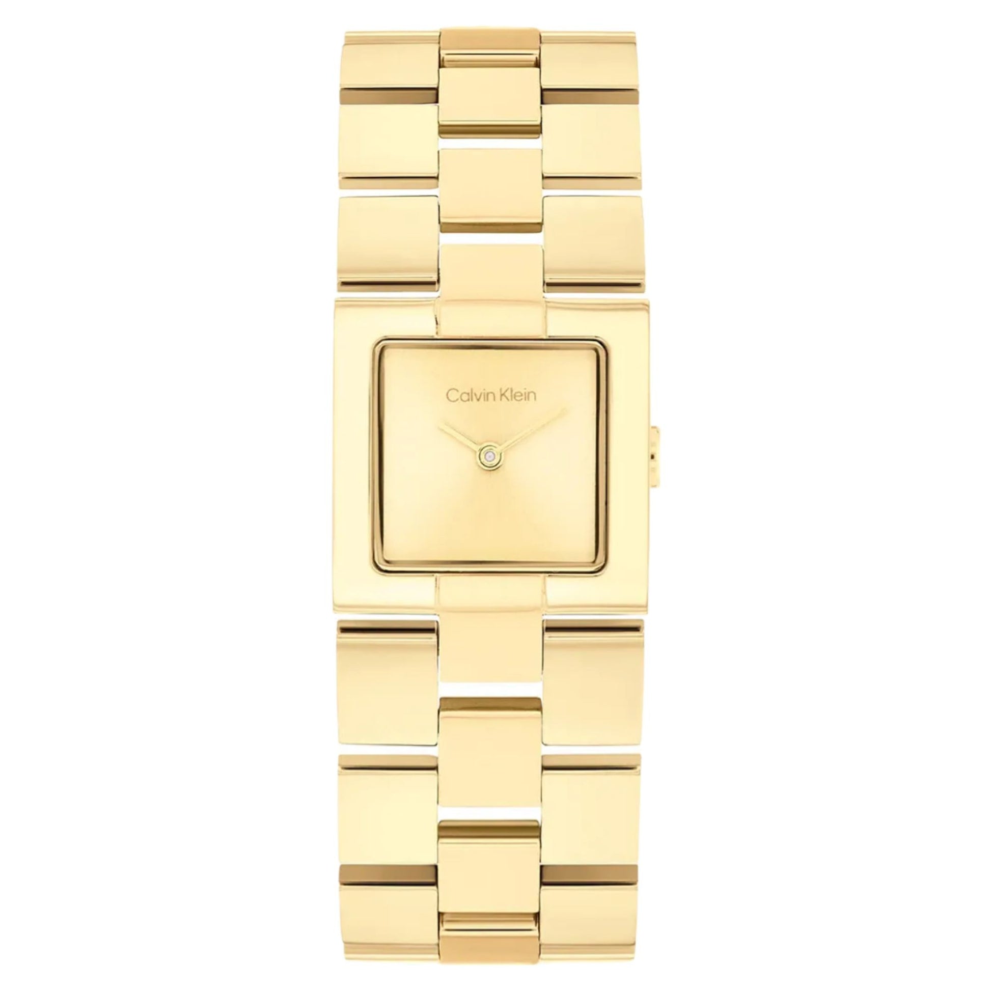 Discover the Calvin Klein CK Meridian series, featuring a distinctive square case reimagined for modern femininity. The sleek 22mm rectangular silhouette houses a minimalist sunray dial, complemented by a sophisticated jewelry-inspired stainless steel bracelet with a refined grid pattern. This contemporary architectural timepiece delivers understated elegance.
