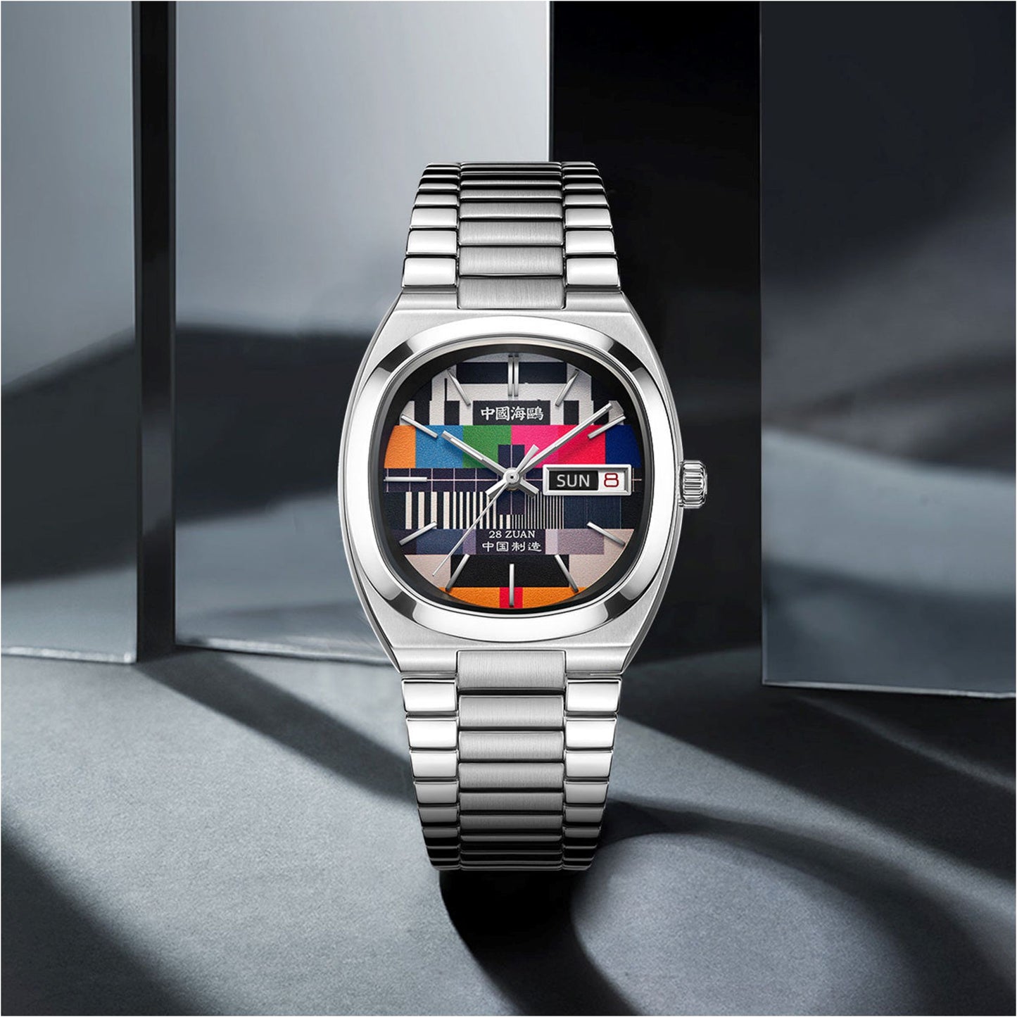 Seagull x Automatic ft. Retro No Signal TV Men Casual Tonneau 50m Water Resistant Watch 826.92.1051A