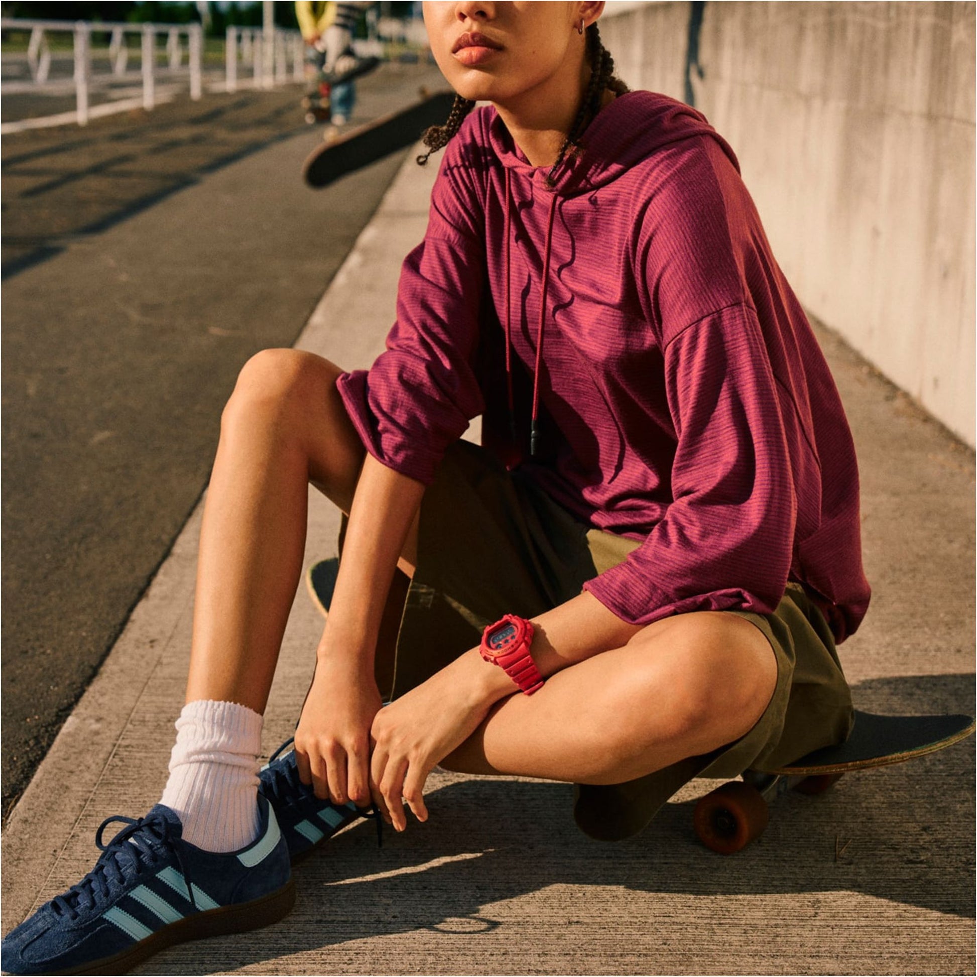 Make a bold statement with the all-red Casio G-Shock DW-6900RRB-4D, featuring a seamless vapor deposition finish and an inverted LCD display for maximum impact. This durable digital watch boasts a 200-meter water-resistant, bio-based resin case and delivers iconic G-Shock toughness in a vibrant, unified look.