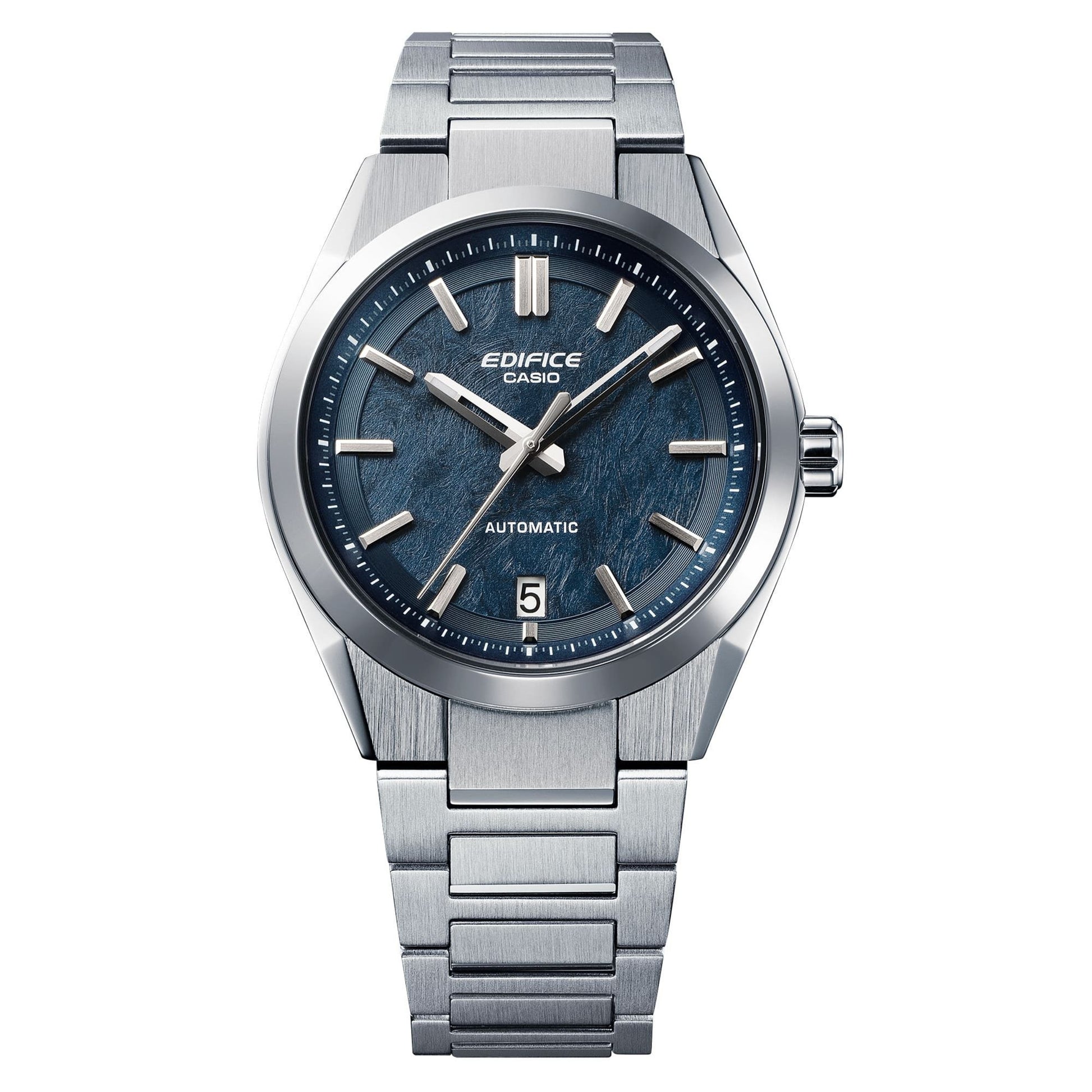 Experience the Edifice EFK-100D, a precision-engineered watch for motorsport enthusiasts. It features a striking electroformed dial that mimics forged carbon, a robust 39mm case, and a sapphire crystal. Powered by a mechanical movement with 40-hour power reserve and showcased through a transparent case back. With 100m water resistance, it blends high-performance inspiration with refined durability.