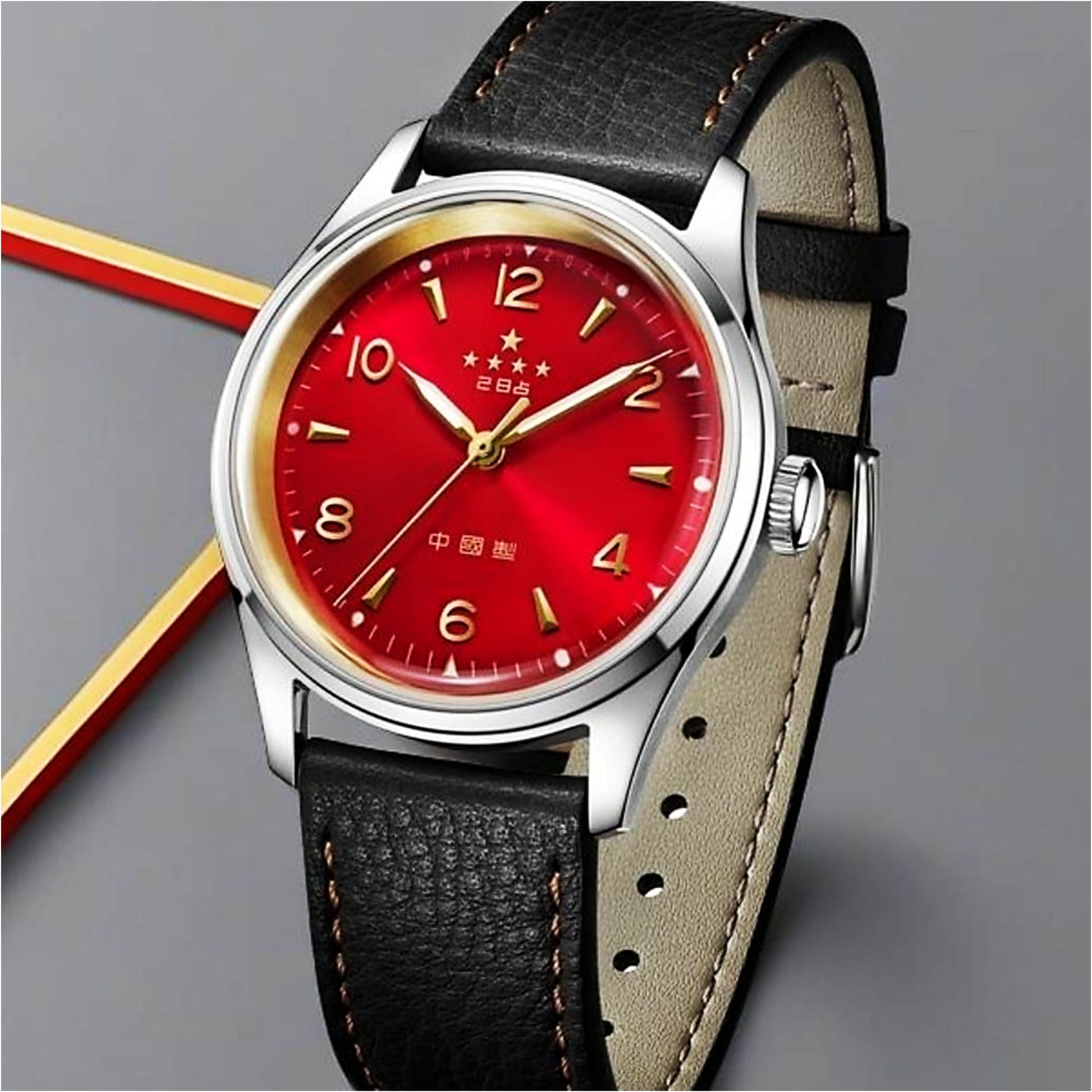 Discover the Seagull Five Stars 70th Anniversary Limited Edition, a commemorative timepiece celebrating Chinese watchmaking heritage. Featuring a striking red sunburst dial with gold-plated markers and hands, this 39mm automatic watch houses the reliable ST2130 movement with sapphire crystal and premium leather strap for collectors and enthusiasts.