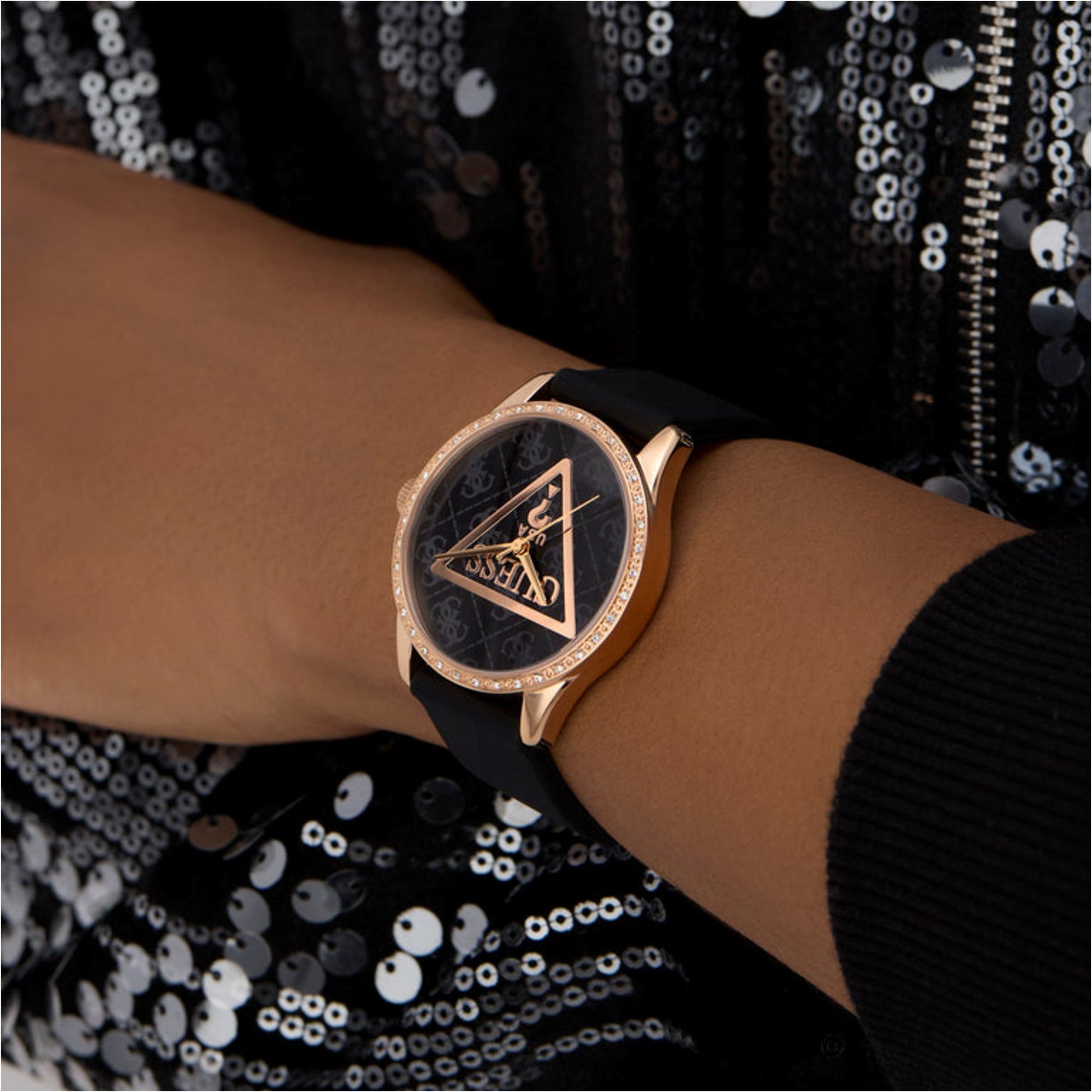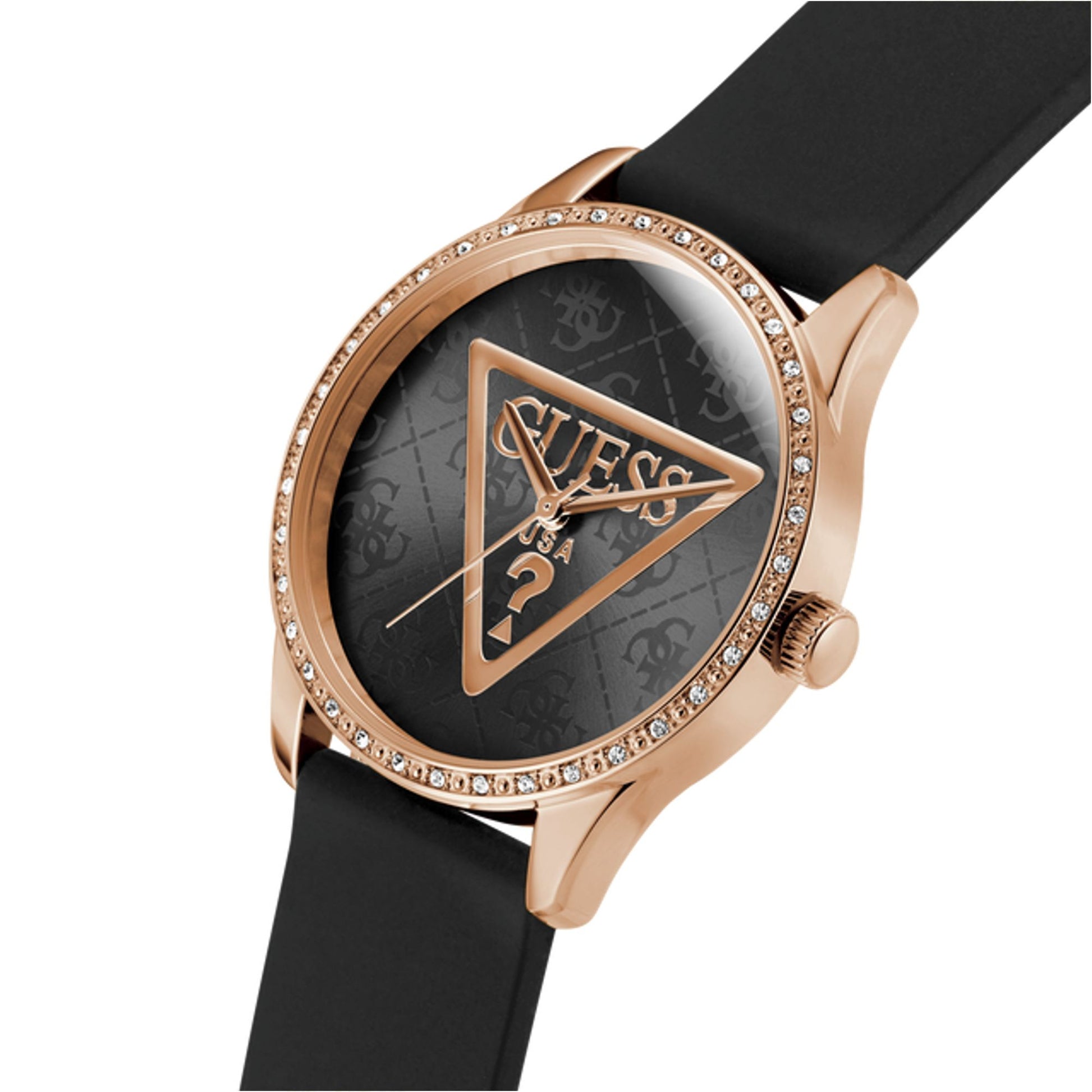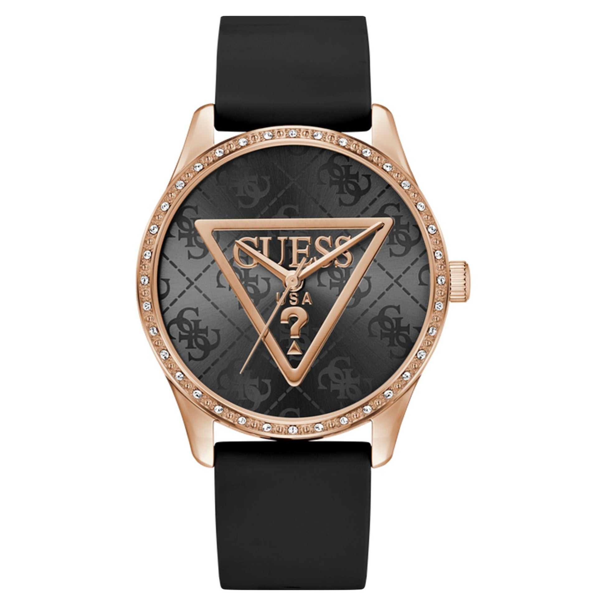 Explore the Guess GW0942L3 watch, a stylish blend of a 36mm rose gold-tone case with a bold black dial for versatile day-to-night wear. The comfortable black silicone strap and 30m water resistance make it a durable, fashion-forward choice.
