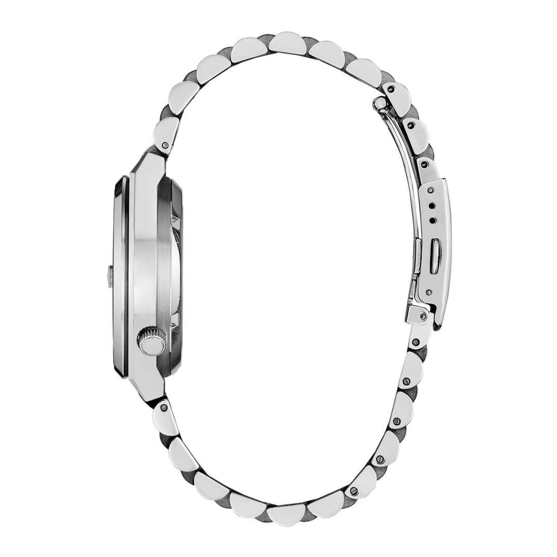 Make a bold statement with the Citizen Tsuyosa Automatic NJ0200, featuring a 37mm stainless steel case and integrated bracelet for seamless style. The striking sunray dial with date window shines under anti-reflective sapphire crystal. Powered by an automatic movement (40-hour power reserve) and 50m water resistant - perfect for work or play.