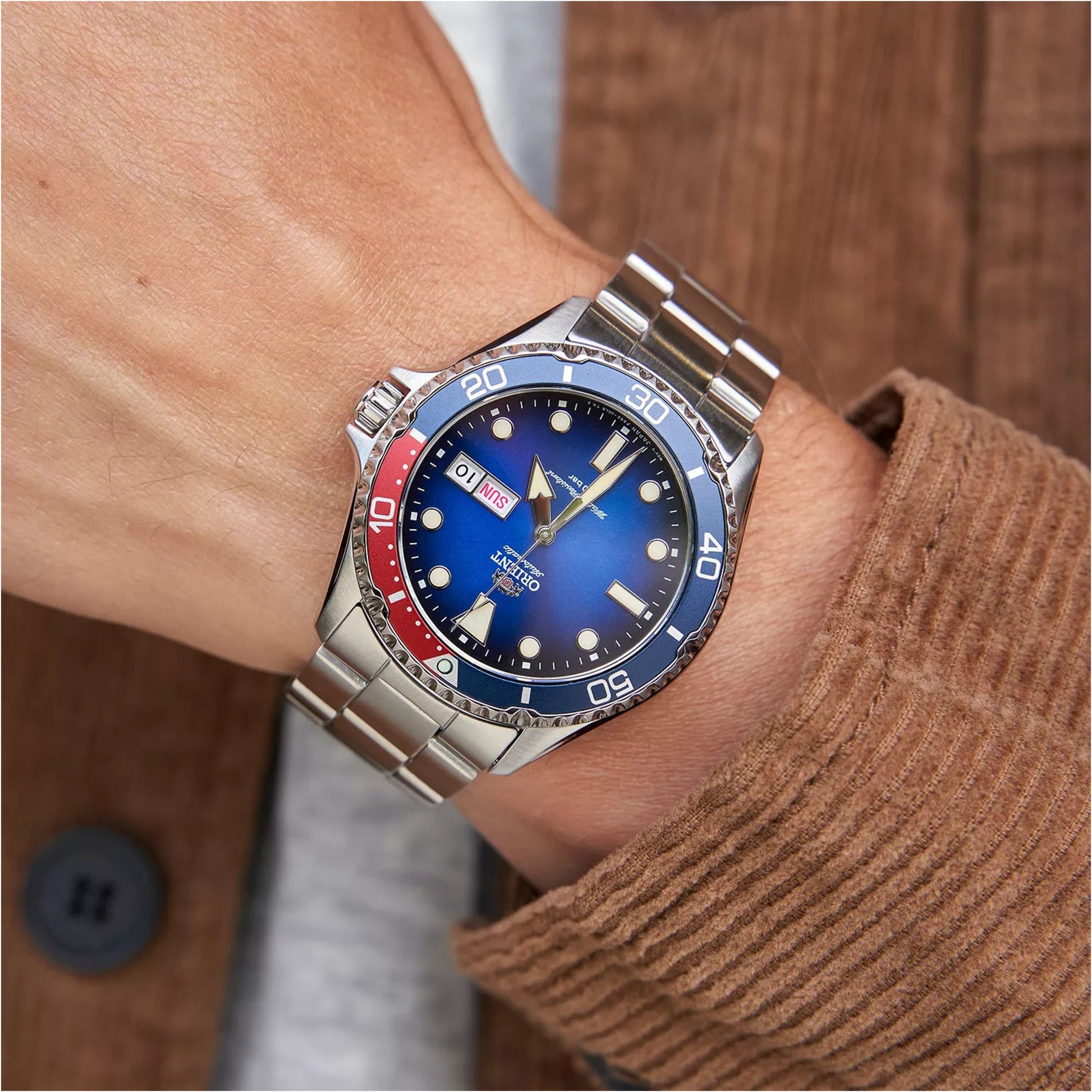The diver design model is ideal for sports and outdoor enthusiasts, featuring vibrant colors and stylish vintage designs perfect for urban settings. Its aluminum bezel highlights two colors at the triangular and 15-minute markers, while sapphire crystal glass and Arabic numerals at 12, 6, and 9 blend a relaxed aesthetic with classic charm, making it suitable for daily wear.