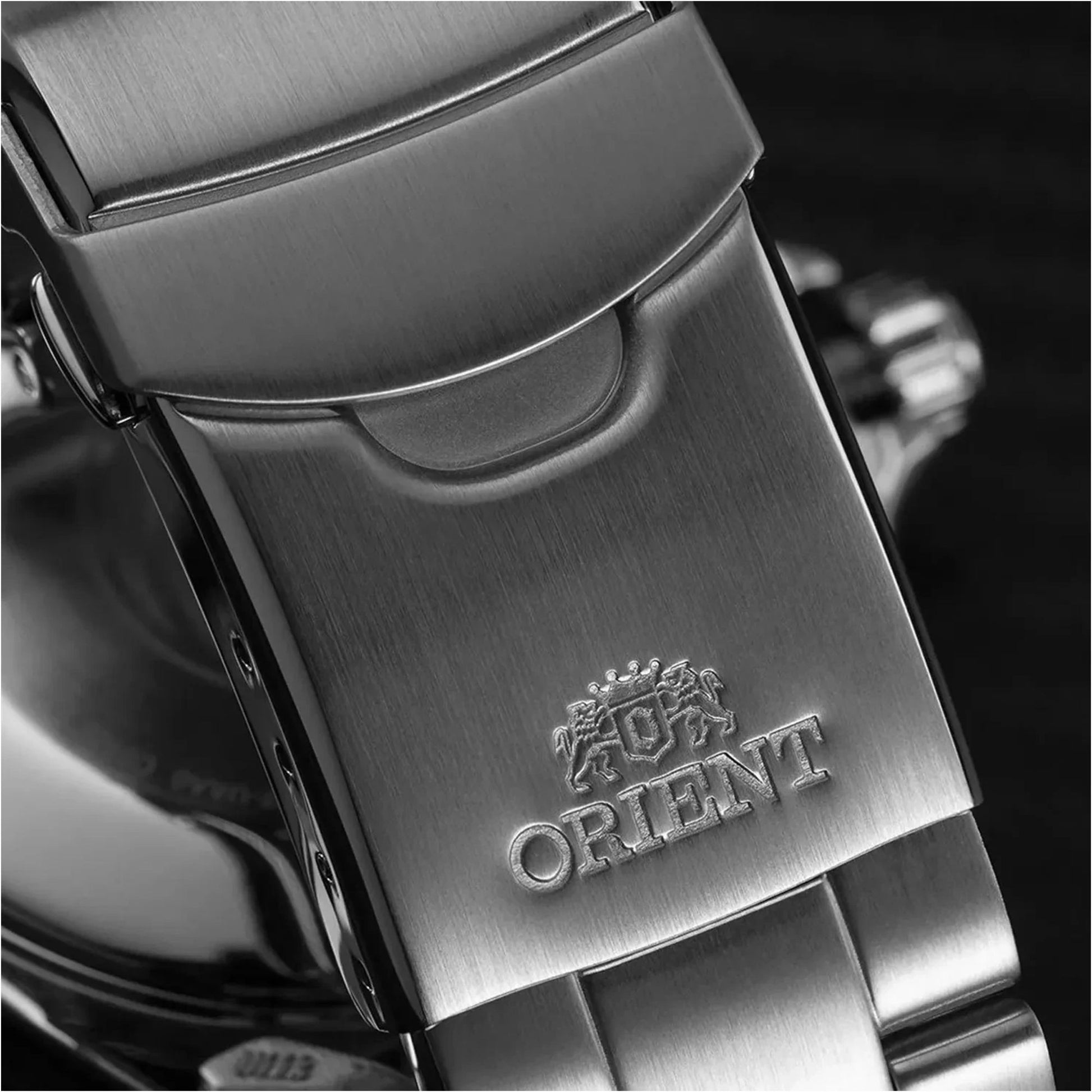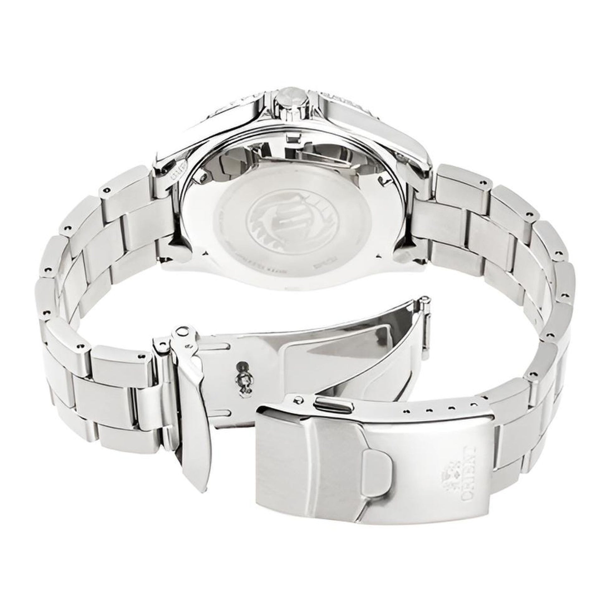 Stainless steel case with stainless steel band (three-fold clasp with secure lock, push-button release)