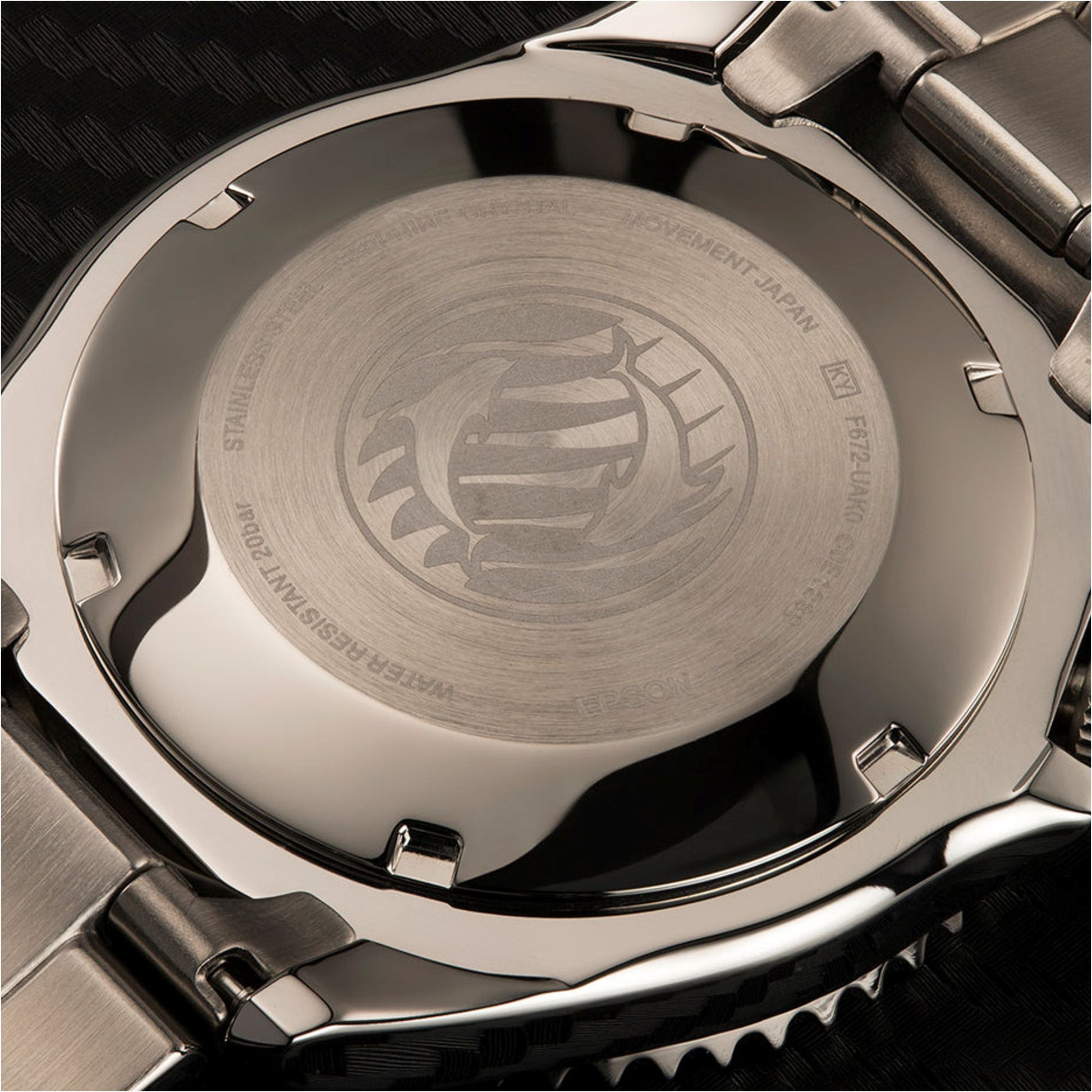 Stainless steel case with stainless steel band (three-fold clasp with secure lock, push-button release)