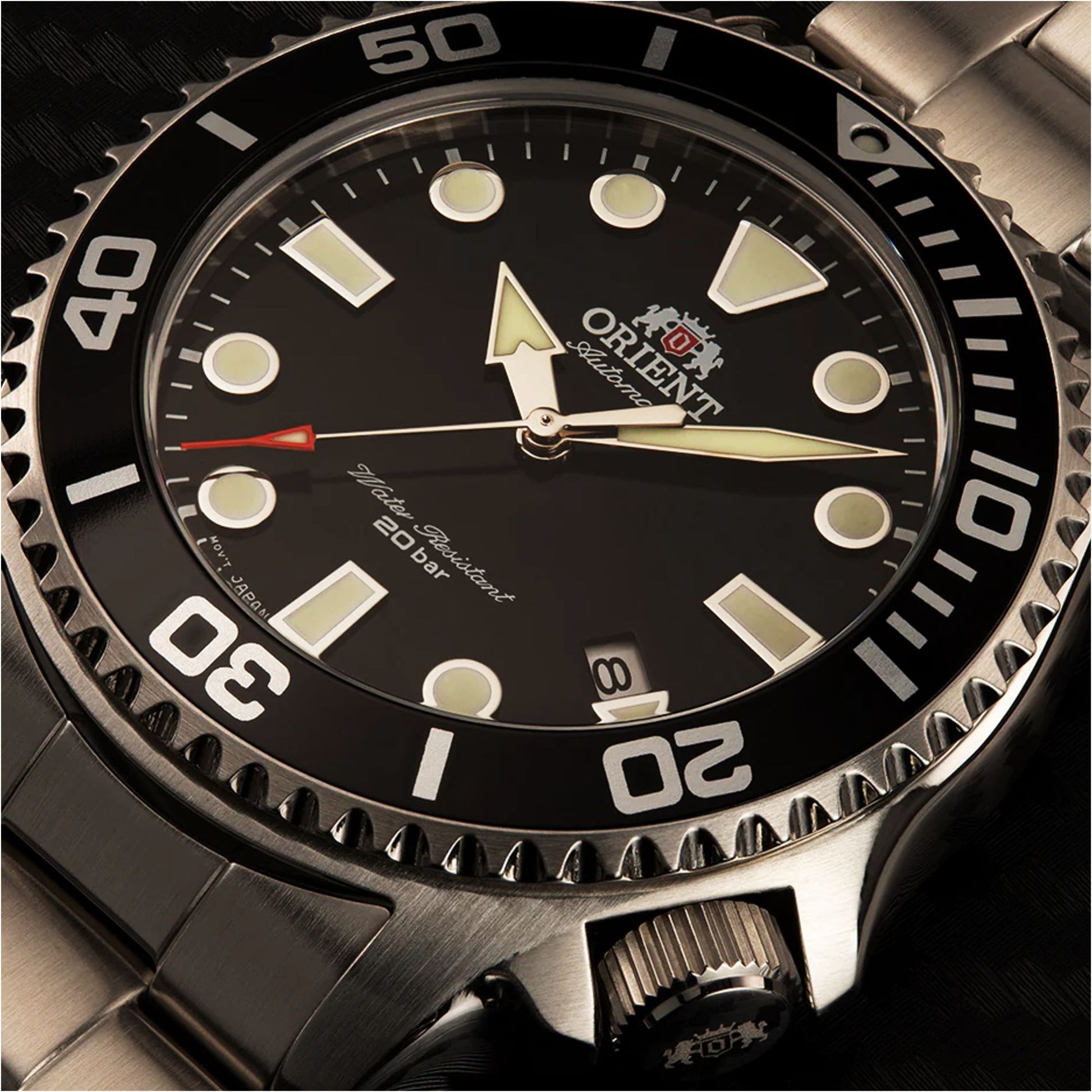 Discover the Orient RA-AC0K01B Sports Automatic - a robust 200m diver with a 43.4mm stainless steel case, F6722 movement (40h power reserve), and sapphire crystal. Featuring luminous markers, unidirectional bezel, and screw-down crown, this professional-grade watch blends tool-watch functionality with refined style for adventurers and watch enthusiasts.