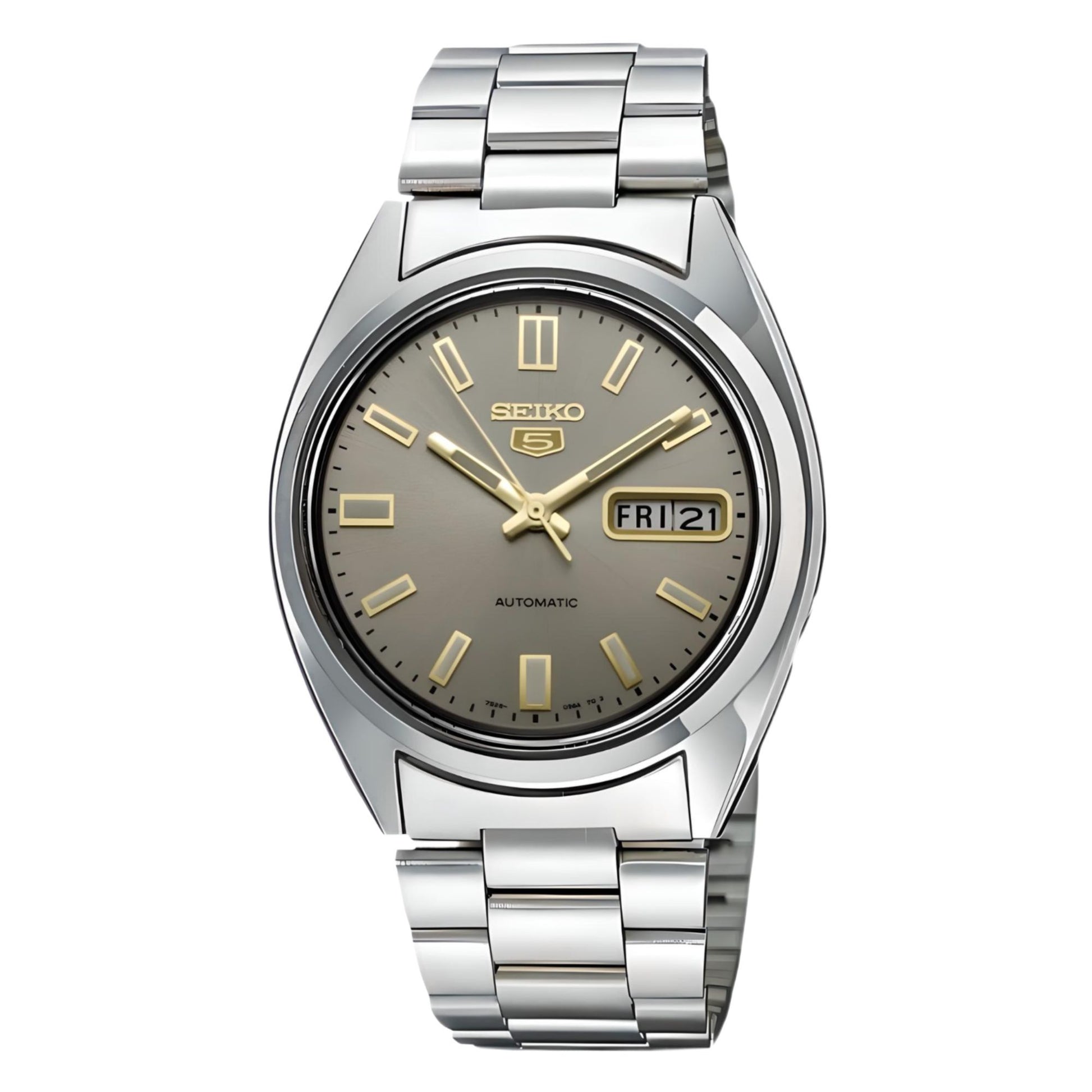 Discover a compact watch that merges bold styling with impressive presence. Its 37mm dial and polished bezel make a statement, while the striking sunburst dial and well-proportioned hour markers highlight elegance and functionality. With a sleek crown and classic Seiko 5 logo, this timepiece perfectly balances style and practicality.