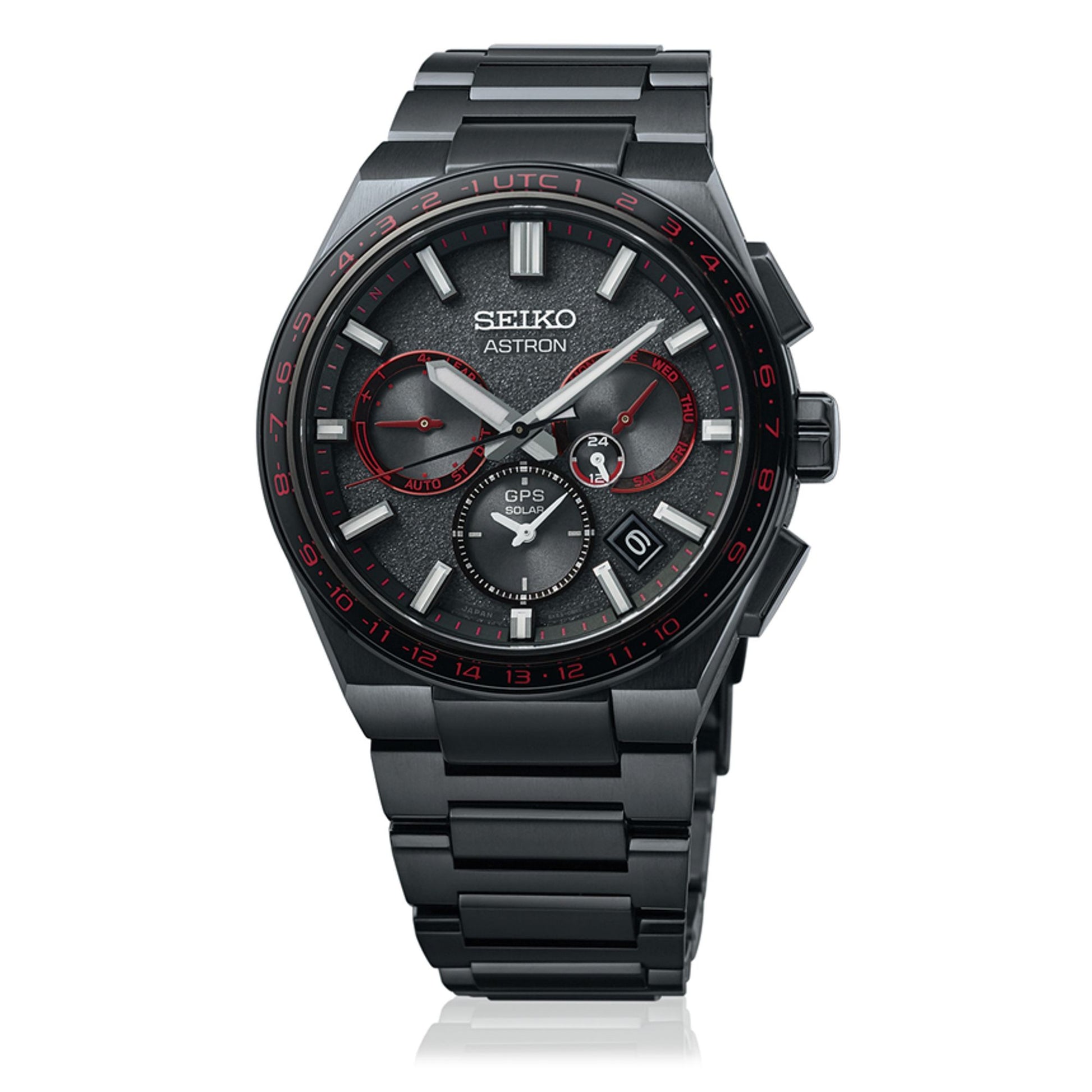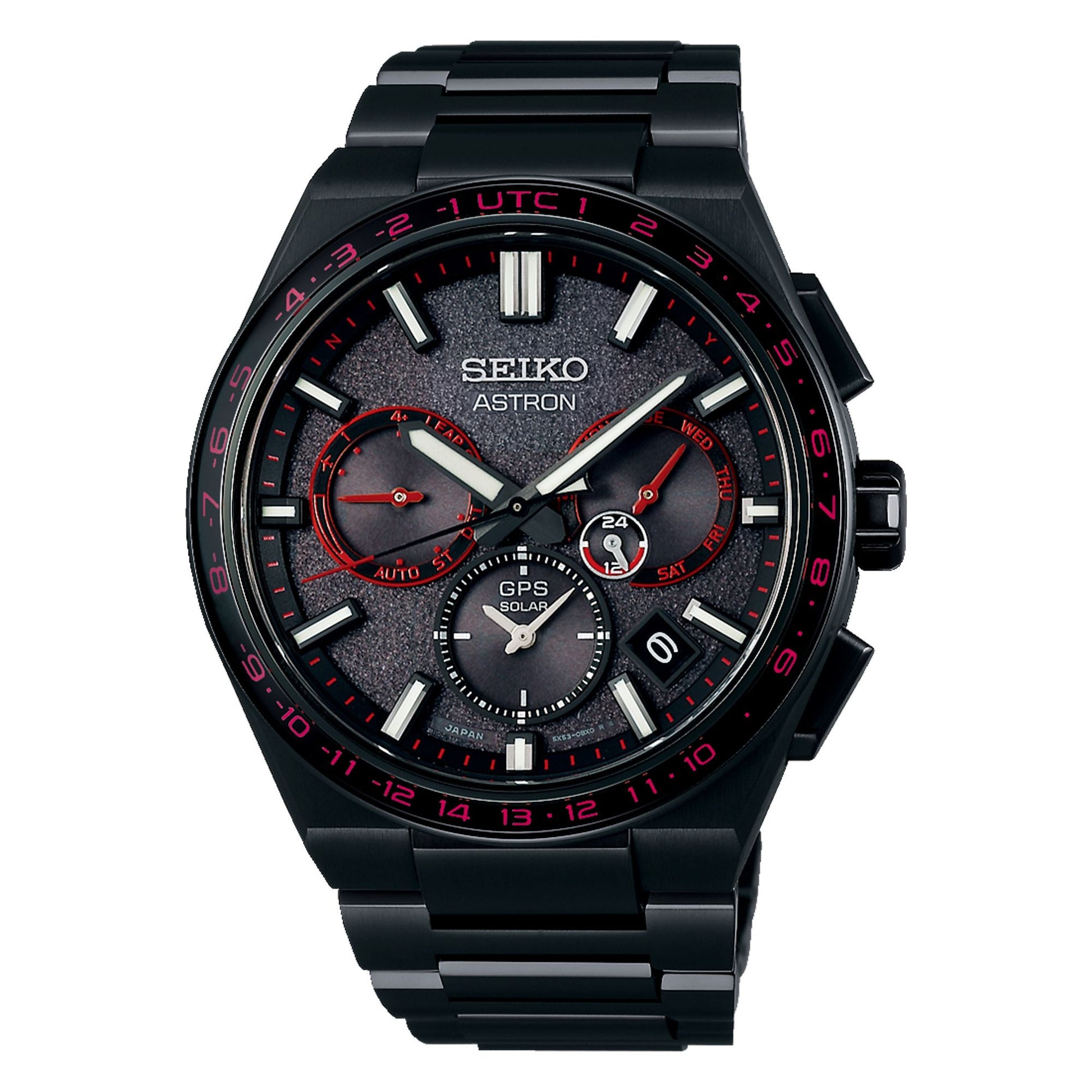 Command attention with the Seiko Astron GPS Solar Limited Edition SSH137J1 - only 1,200 pieces exist. This bold all-black titanium watch features red accents, an asphalt-textured dial, and a dual-tone silicone strap. Powered by Seiko 5X53 solar GPS movement, with 100m water resistance, 39 time zones, and perpetual calendar. A statement piece for pioneers.