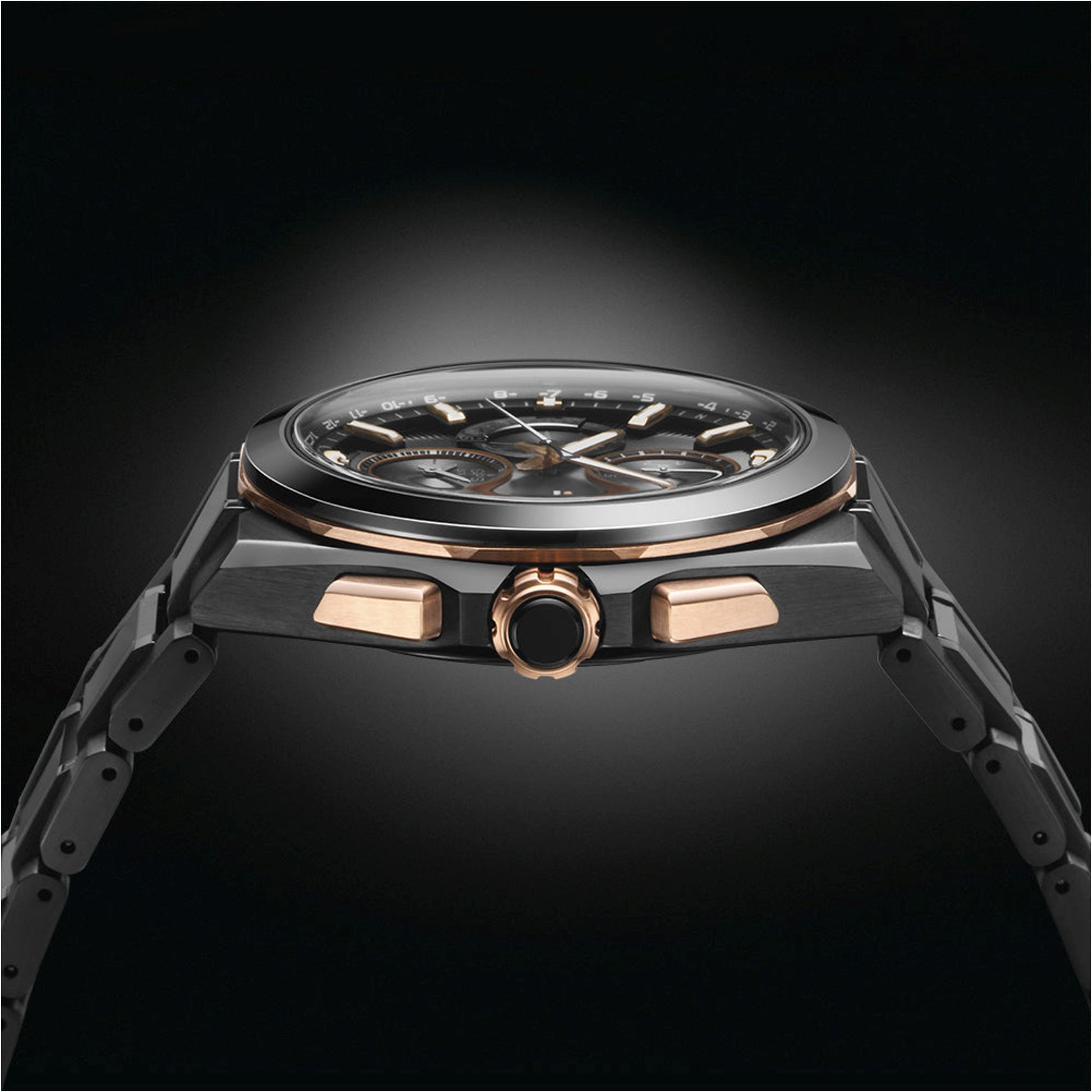 Titanium (super-hard coating) / ceramic case, ceramic / titanium bezel with titanium / ceramic band (three-fold clasp with push-button release, smart adjuster function)