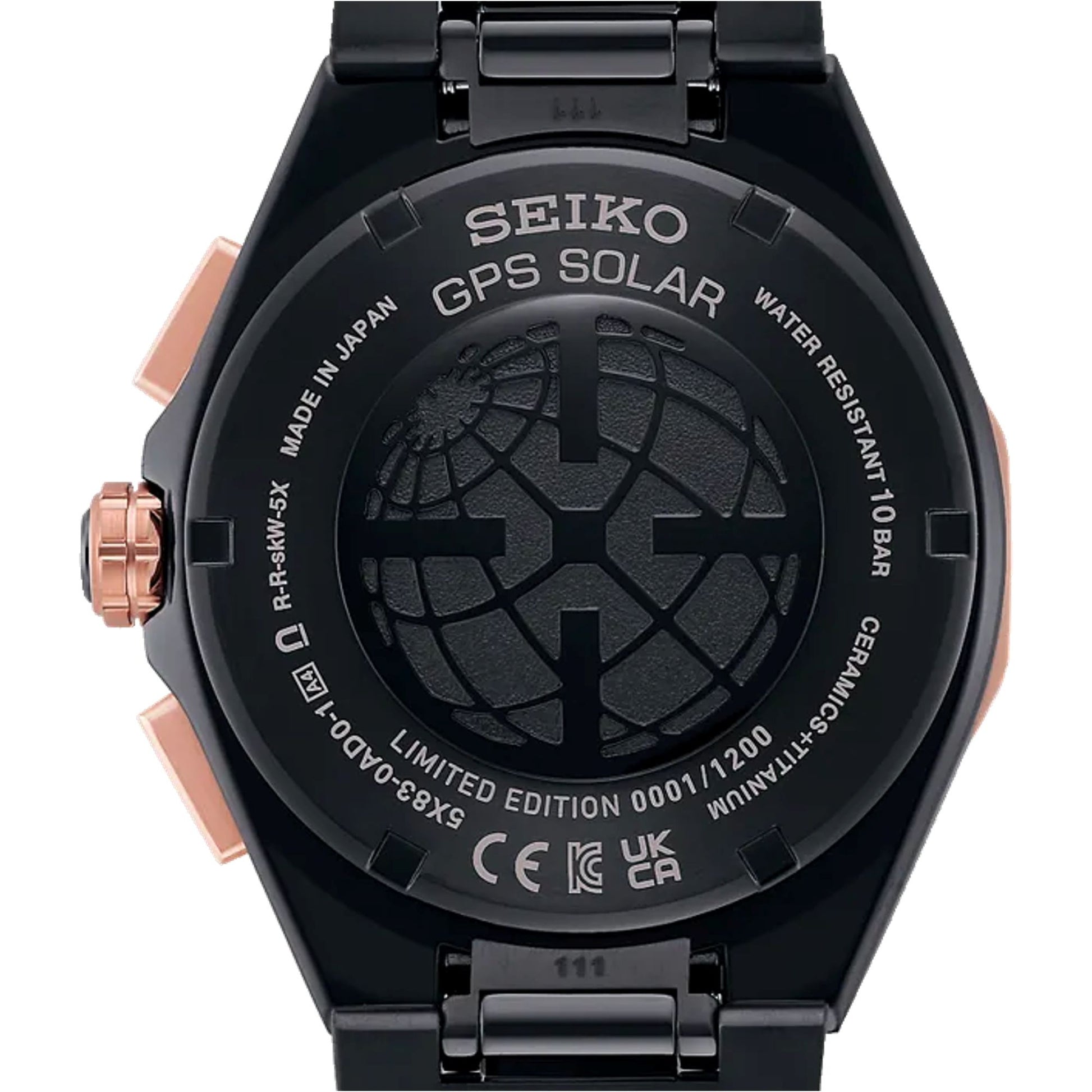 Celebrate Seiko 100th Anniversary with this limited edition GPS Solar watch, inspired by Earth brilliance from space. Features a stunning gradient dial, pink gold accents, and two-tone ceramic-titanium bezel. The globe-engraved case back honors Seiko legacy of innovation. Powered by light with world-time accuracy - a tribute to timeless excellence.