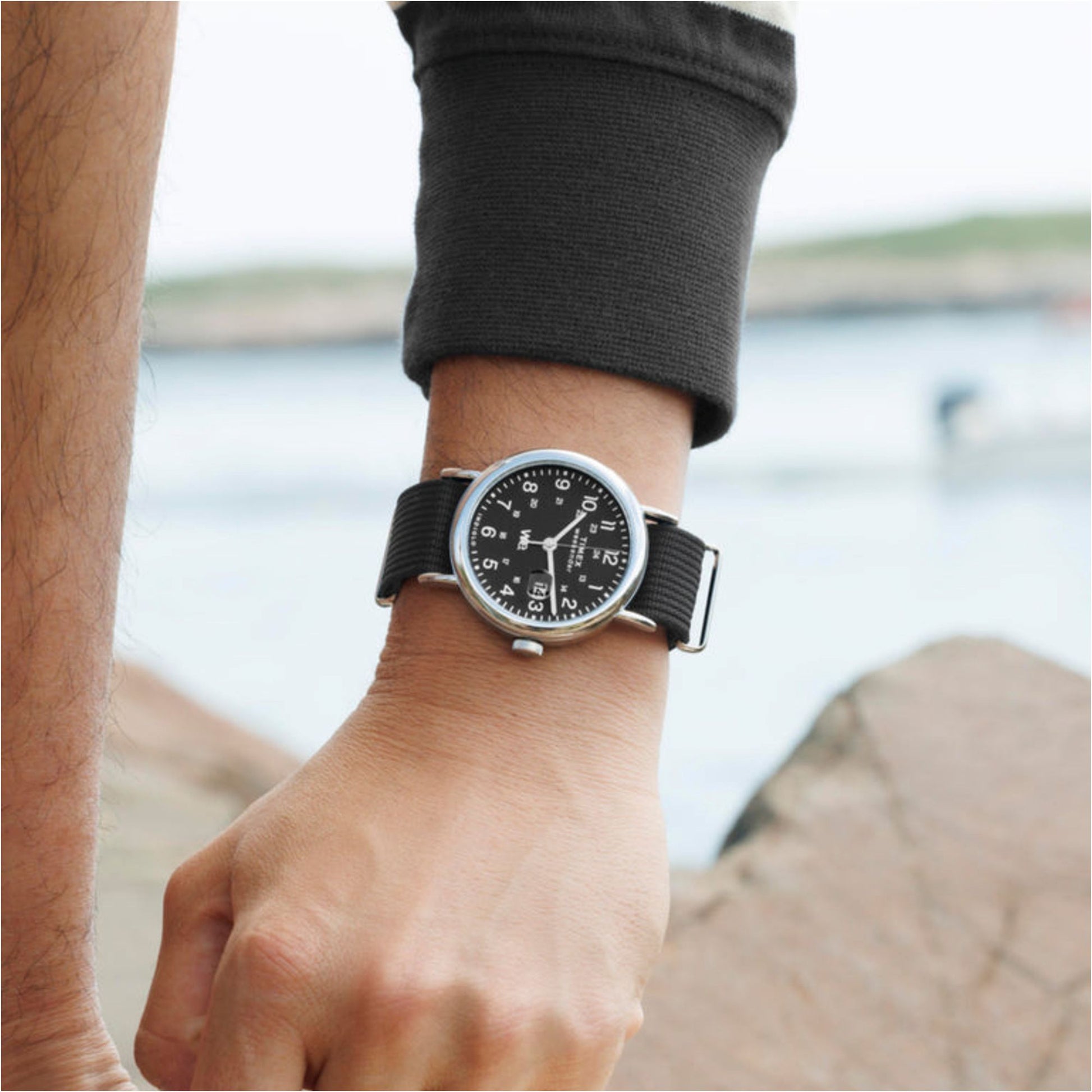 Transform any day into a weekend with the Timex Weekender - featuring a sleek 37mm case, customizable slip-thru fabric straps, and INDIGLO backlight. The black dial includes a magnified date window, 12/24-hour indexes, and the iconic we. logo. Lightweight, versatile, and endlessly adaptable for everyday adventures.