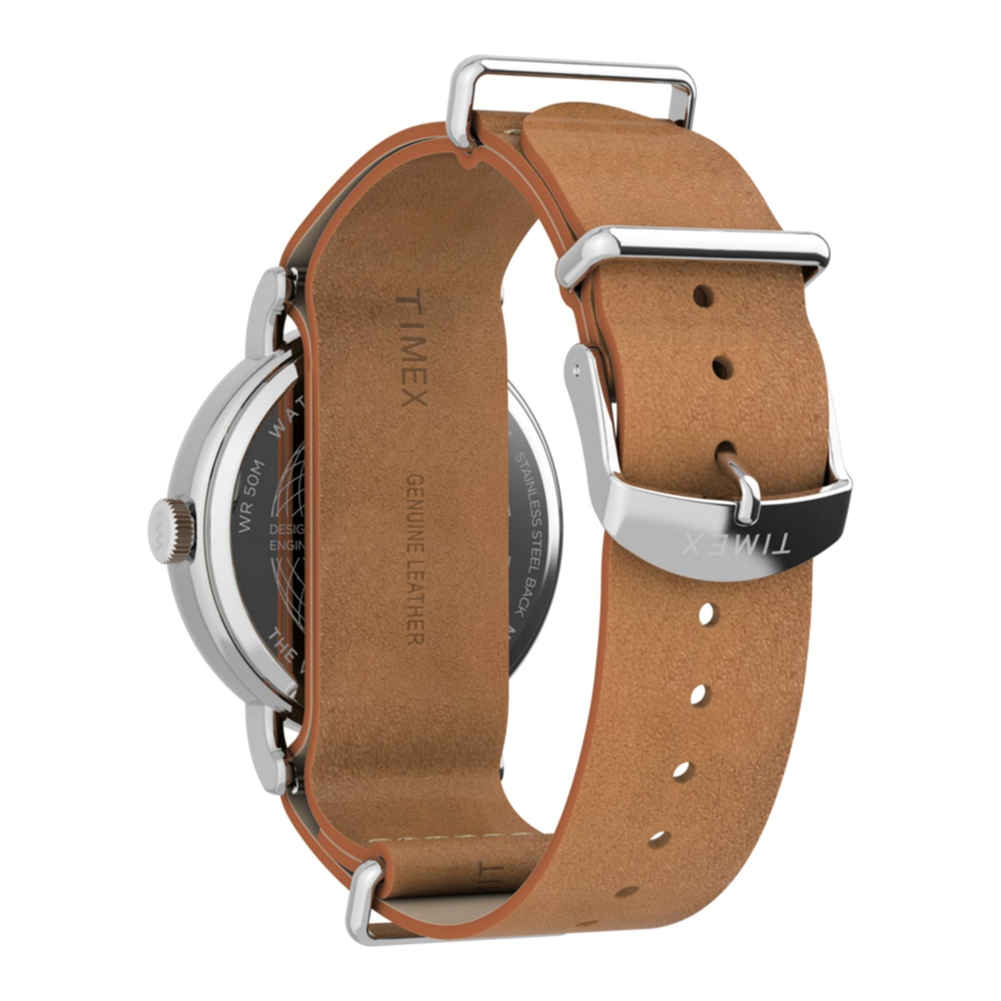 Refresh your style with the Timex Weekender 40mm, featuring a sleek new case, luminous hands, and INDIGLO backlight. The eco-friendly LWG-certified leather strap is easily swappable, while the blue dial offers date magnification and dual 12/24-hour indexes. Perfect for everyday adventures with your favorite people.